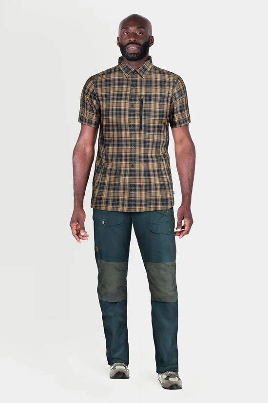 A lightweight, comfortable short-sleeved shirt for trekking and outdoor life in the summer. The Abisko Hike Shirt is made from a soft, functional fabric that wicks away moisture and feels cool against the skin. This is a convenient garment that takes little space in a pack – and proves practical when space is limited. Features include a well-fitting cut, vertical chest pocket with zipper and mesh lining, and a ventilation opening at the yoke to release excess heat.